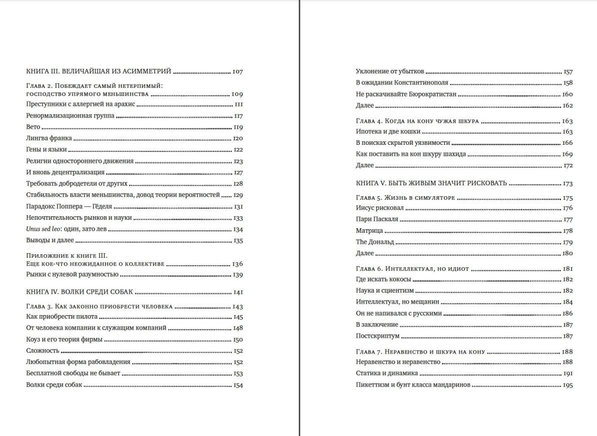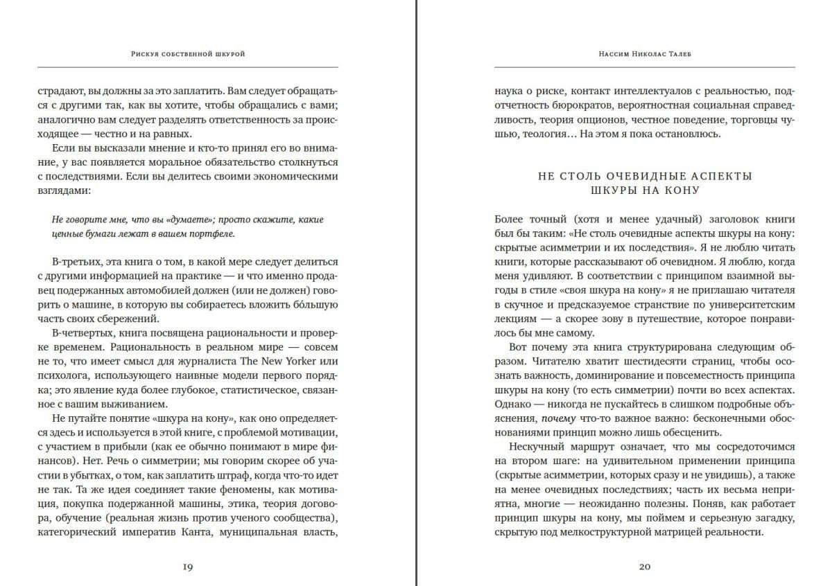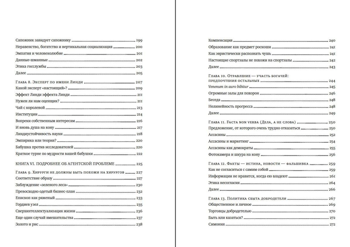 В своей новой, резко провокационной и одновременно предельно прагматичной книге неподражаемый Николас Нассим Талеб рассказывает, как важно идентифицировать и фильтровать чушь, отличать теорию от практики, поверхностную компетентность от настоящей. Вы узнаете, что такое рациональность в сложных системах и реальном мире, симметрия и асимметрия и в чем состоит логика принятия рисков. Наполняя новым смыслом привычные понятия, такие как «справедливое общество», «профессиональный успех», «личная ответственность», и не боясь задеть эго признанных кумиров, Талеб развенчивает лицемерные идеи и действия апологетов военного вмешательства, инвесторов рынка ценных бумаг и религиозных проповедников. На примерах Хаммурапи и Иисуса Христа, римских и византийских императоров, Сенеки и Дональда Трампа Талеб показывает, что самое важное качество, объединяющее прославленных героев, беззаветных святых и гениальных бизнесменов, — не переносить риск на других. «Я люблю, когда меня удивляют. В соответствии с принципом взаимной выгоды я зову читателя в путешествие, которое понравилось бы мне самому». (Нассим Николас Талеб)