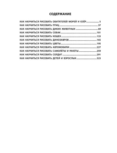 Следуйте советам, приведенным на страницах этого увлекательного пособия, - и вы быстро научитесь рисовать как подвижных весёлых рыбок, так и мощные космические корабли. На каждой странице приведено несколько схем, по которым вы легко поймёте, как создается тот или иной понравившийся вам рисунок. Внимательно рассмотрите инструкции и принимайтесь за дело! В первую очередь рисуйте простые геометрические фигуры, а затем добавляйте более мелкие детали. Не спешите сразу делать рисунок цветным, сначала возьмите твёрдый простой карандаш. Позаботьтесь, чтобы он был хорошо отточен. Часто придется работать ластиком, особенно в первое время, но не отчаивайтесь: с каждым разом ваши рисунки будут получаться все лучше и лучше. Когда добьётесь точного воспроизведения контуров, можете смело браться за цветные карандаши и фломастеры. В начале книги вы найдете более простые схемы - геометрические фигуры в основе этих рисунков, а также дополнительные детали довольно легки в исполнении.