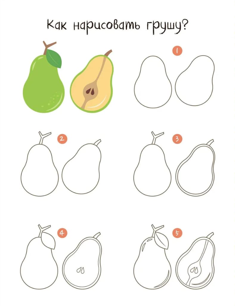 Рисуем по шагам. Фрукты и овощи