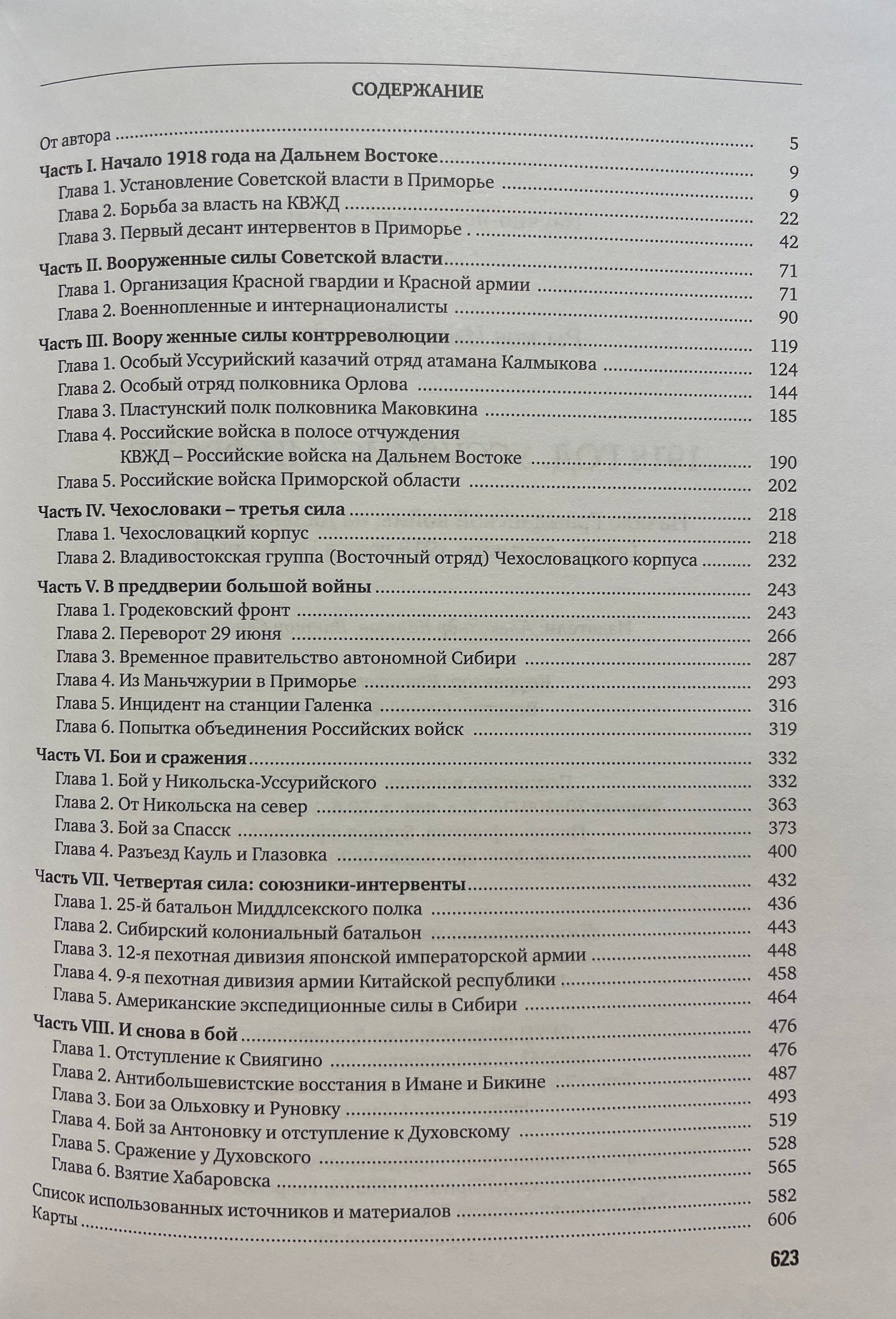 В книге на основе архивных документов впервые рассмотрен подробный состав и действия всех участвующих сторон: отрядов Красной армии, белогвардейских отрядов, полков Чехословацкого корпуса и воинских контингентов стран союзников, действовавших в Приморье. Впервые подробно описаны все бои и сражения на Уссурийском фронте в 1918 году, представлены карты боевых действий и редкие бесценные фотодокументы тех лет.