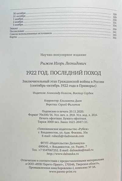 Книга посвящена заключительному этапу Гражданской войны в России на Дальнем Востоке. На основе документальных материалов восстановлена хронология событий, произошедших в сентябре - октябре 1922 года в Приморье, также подробно расписаны состав и численность частей, участвовавших в боях как с одной, так и с другой стороны. Несомненным достоинством книги являются найденные автором редкие, никогда не публиковавшиеся фотографии из частных собраний.