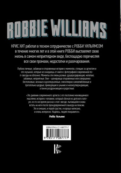 Крис Хит работал в тесном сотрудничестве с Робби Уильямсом в течение многих лет и в этой книге Робби выставляет свою жизнь в самом неприглядном виде, беспощадно перечисляя все свои промахи, недостатки и разочарования.