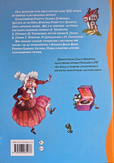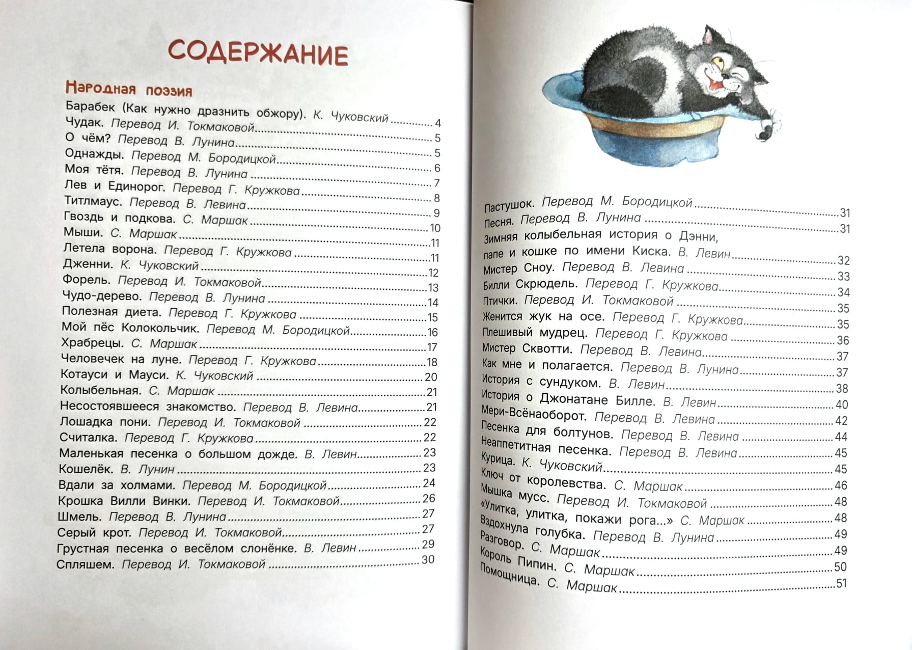 Все это звучало по русски благодаря класикам перевода К.Чуковскому, С.Маршаку, И.Токмаковой. Вас ожидает большое путешествие в настоящий мир поэзии, где вы познакомитесь с Крошкой Вилли Винки, Робином Бобином, Мауси и многими другими полюбившимися героями.
