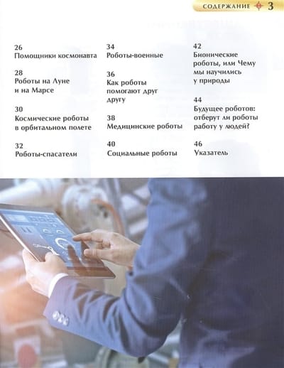 Эта книга предназначена для знакомства с робототехникой. Из нее станет понятно, что же такое на самом деле робот. Читатель изучит устройство роботов и узнает, как ими можно управлять. В книге рассказывается о роботах-курьерах, космонавтах, пожарных, хирургах, полицейских, военных, саперах, разведчиках, спасателях, сиделках, сварщиках и многих других! Автор делится сведениями о беспилотных летательных аппаратах, безэкипажных кораблях и необитаемых подводных аппаратах. В книге есть информация о роботах, устройство которых инженеры позаимствовали у природы. Читателю также предлагается заглянуть в недалекое будущее, в котором роботов станет еще больше, и ответить на вопрос, стоит ли человеку бояться роботов?