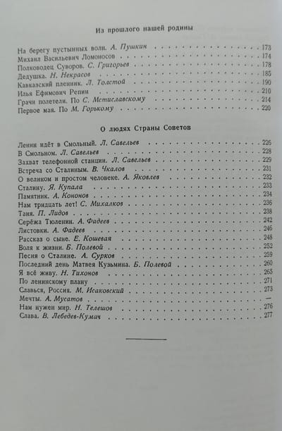 Очень важно, чтобы знакомство детей с языком, со словом происходило при помощи лучших литературных образцов. Все поэтические и прозаические фрагменты, публикуемые в советских учебниках, проходили очень строгий и тщательный отбор. Настоящее издание представляет собой оригинальный текст пособия, утверждённого Министерством просвещения РСФСР в 1955 году. В пособии приведены произведения А, Пушкина, М. Лермонтова, Н. Некрасова, К. Чуковского, В. Бианки, А. Твардовского, В. Гаршина, И. Крылова, А. Чехова, И. Тургенева, В. Маяковского, В. Короленко, В. Катаева, В. Гюго, П. Вяземского, Д. Мамина-Сибиряка, Е. Баратынского. Кроме того, здесь содержатся легенды и пословицы, а также сведения о знаменитых выдающихся людях – А. Пушкине, М. Горьком, Л. Толстом, И. Репине, М. Ломоносове, А. Суворове.