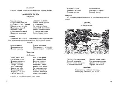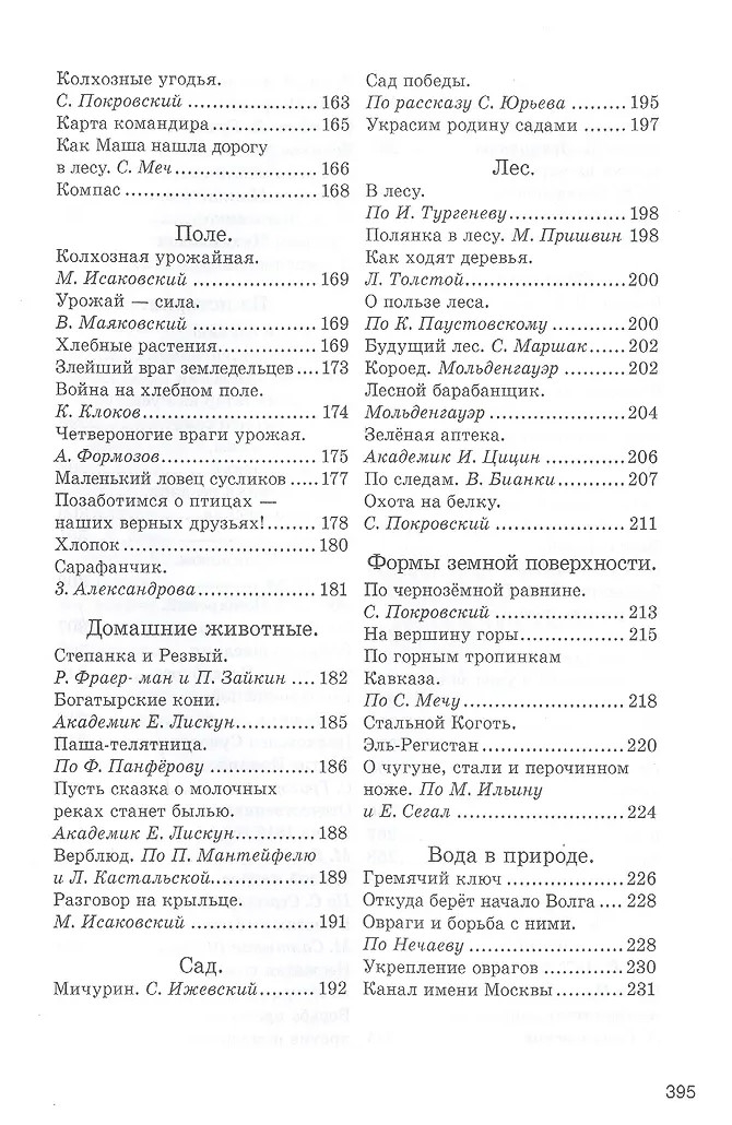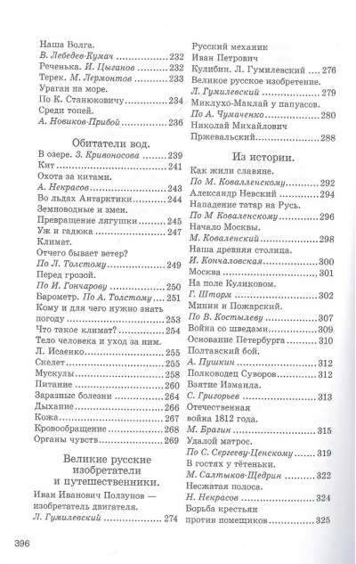 Одна из важных особенностей советских учебников заключалась в строгом и чётком отборе материала, предлагаемого вниманию школьников. Настоящее издание состоит из нескольких разделов, посвящённых разным темам. Это «Воспоминания о лете», «Осенние наблюдения», «Школа, товарищи, семья», «Зима», «Весна», «Города и дороги», «География и природоведение», «Домашние животные», «Тело человека и уход за ним». Есть также главы, рассказывающие о важных вехах в истории нашей страны и о великих русских изобретателях и путешественниках. Все темы проиллюстрированы произведениями выдающихся мастеров слова: Л. Толстого, А. Пушкина, М. Горького, Н. Некрасова, А. Майкова, А. Чехова, М. Пришвина, Ф. Тютчева, Г. Сенкевича, Г. Х. Андерсена, В. Маяковского, М. Лермонтова, М. Салтыкова-Щедрина, А. Кольцова, А. Твардовского, А.Барто.