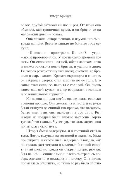 «Медленно и осторожно Эрика обошла тело. Шторы в комнате были задернуты, и не было никаких признаков того, что кто-то выломал дверь, но стул был перевернут, а на полу валялись журналы и несколько предметов: свеча в подсвечнике, органайзер и, как ни удивительно, «Скрабл» — коробка лежала на полу, по ковру рассыпались фишки с буквами. Жестокая борьба, но никаких признаков взлома. Она знала убийцу?»