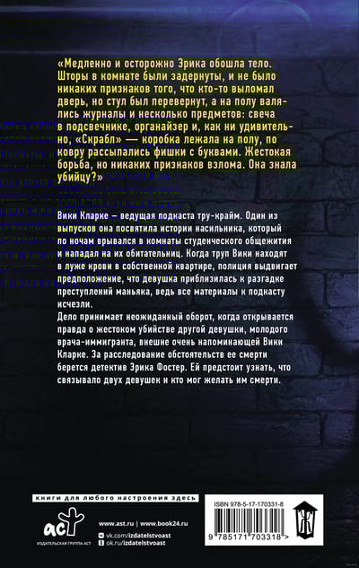 Дело принимает неожиданный оборот, когда открывается правда о жестоком убийстве другой девушки, молодого врача-иммигранта, внешне очень напоминающей Вики Кларке. За расследование обстоятельств ее смерти берется детектив Эрика Фостер. Ей предстоит узнать, что связывало двух девушек и кто мог желать им смерти.