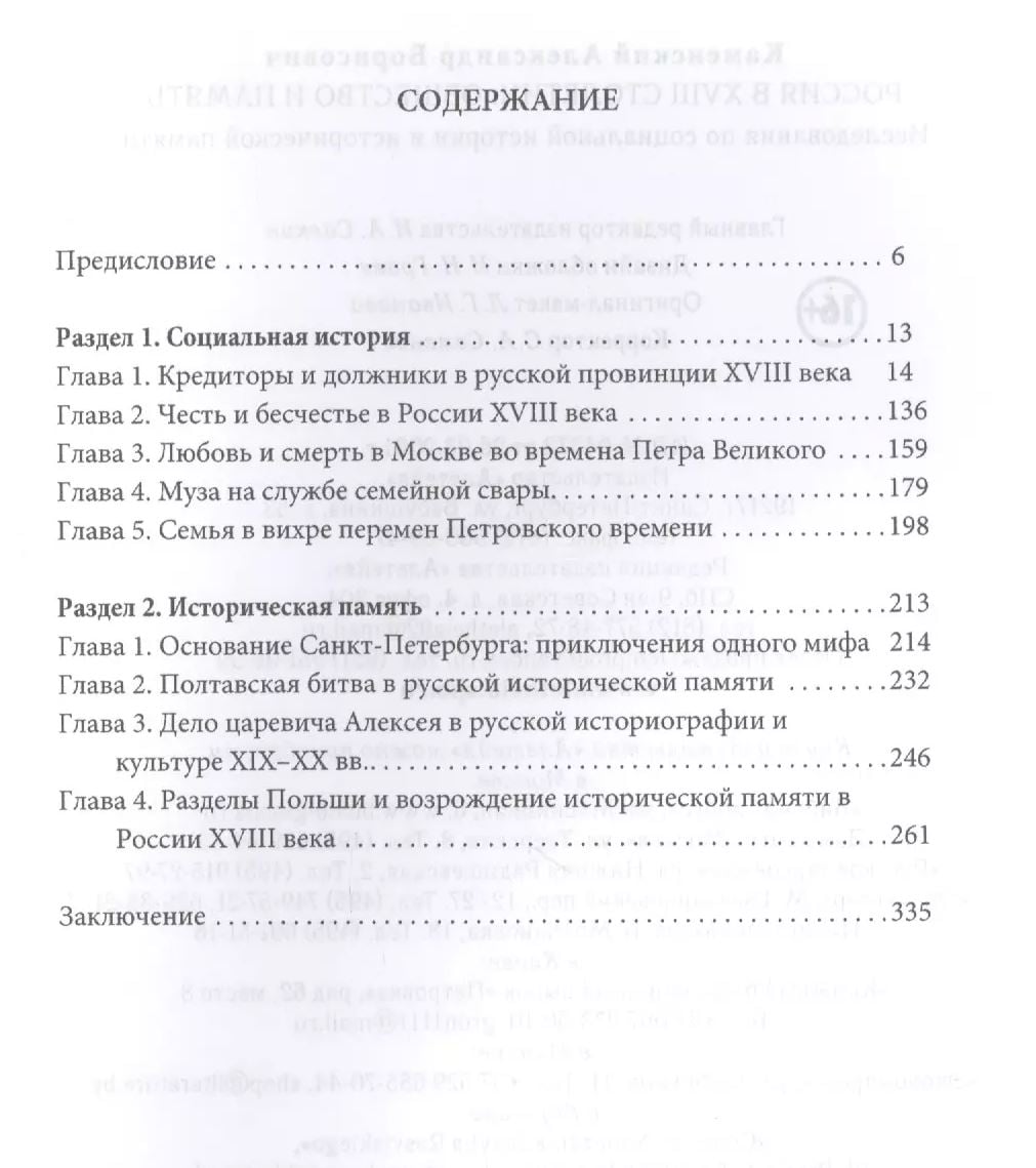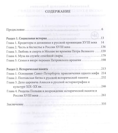 В фокусе основанных на широком круге источников исследований А. Б. Каменского — русское общество XVIII столетия. В первом разделе книги представлены работы, посвященные тому, как было устроено общество этого времени — какова была его структура, внутренние связи, как действовали механизмы социальной мобильности, каковы были повседневные социальные практики. Во втором разделе рассматривается, как формировалась историческая память о ряде ключевых моментов истории России XVIII столетия, какой след они оставили в литературе и искусстве, как реальные события становились историческими мифами.