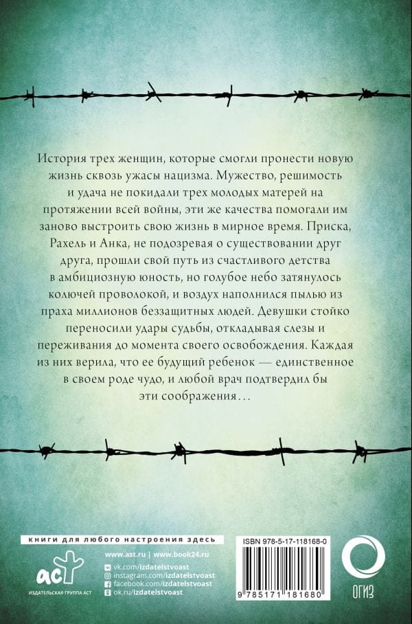 История трех женщин, которые смогли пронести новую жизнь сквозь ужасы нацизма. Мужество, решимость и удача не покидали трех молодых матерей на протяжении всей войны, эти же качества помогали им заново выстроить свою жизнь в мирное время. Приска, Рахель и Анка, не подозревая о существовании друг друга, прошли свой путь из счастливого детства в амбициозную юность, но голубое небо затянулось колючей проволокой, и воздух наполнился пылью из праха миллионов беззащитных людей. Девушки стойко переносили удары судьбы, откладывая слезы и переживания до момента своего освобождения. Каждая из них верила, что ее будущий ребенок — единственное в своем роде чудо, и любой врач подтвердил бы эти соображения...