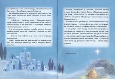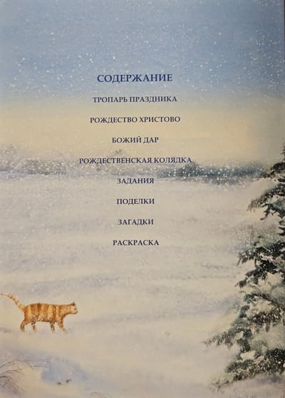 Иллюстрированный «Рождественский подарок для детей» открывается пересказом событий, связанных с Рождеством Христовым. В книгу также включены стихотворение «Божий дар», рождественская колядка, задания, загадки и поделки к Празднику. Дети вместе со взрослыми смогут смастерить объемную открытку, елочную игрушку, праздничную подвеску, а также нарисовать восковым мелком, акварелью и солью деревья, вихри ветра и снежинки.