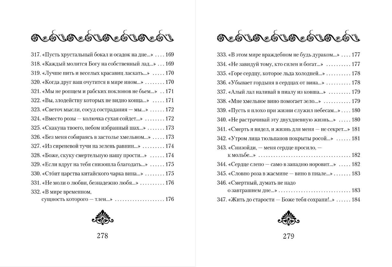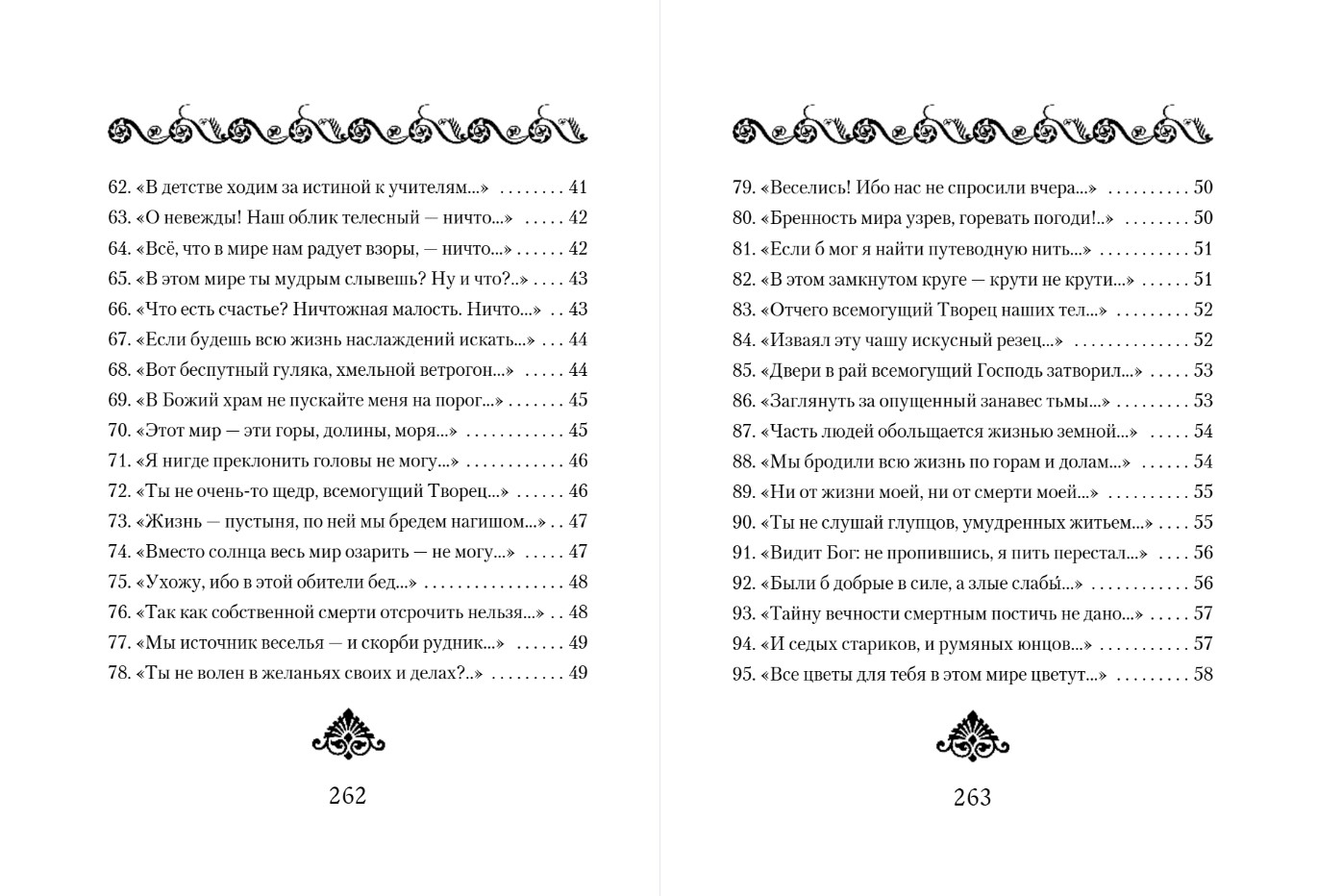 Знаменитые четверостишия-рубаи классика персидской поэзии и великого философа Омара Хайяма (ок. 1048 — ок. 1123) переводятся на русский язык уже более ста лет, но с особым успехом — начиная с 70-х годов XX века. Такой всесветной известности, как Омар Хайям, не знают другие великие поэты Востока. Его рубаи на устах у всех, кто любит поэзию: написанные почти тысячу лет назад, они актуальны и сегодня. Читать Хайяма — значит, видеть жизнь во всех ее красках. В сборник, который вы держите в руках, вошли рубаи, переведенные замечательным поэтом и переводчиком восточной поэзии Германом Плисецким.