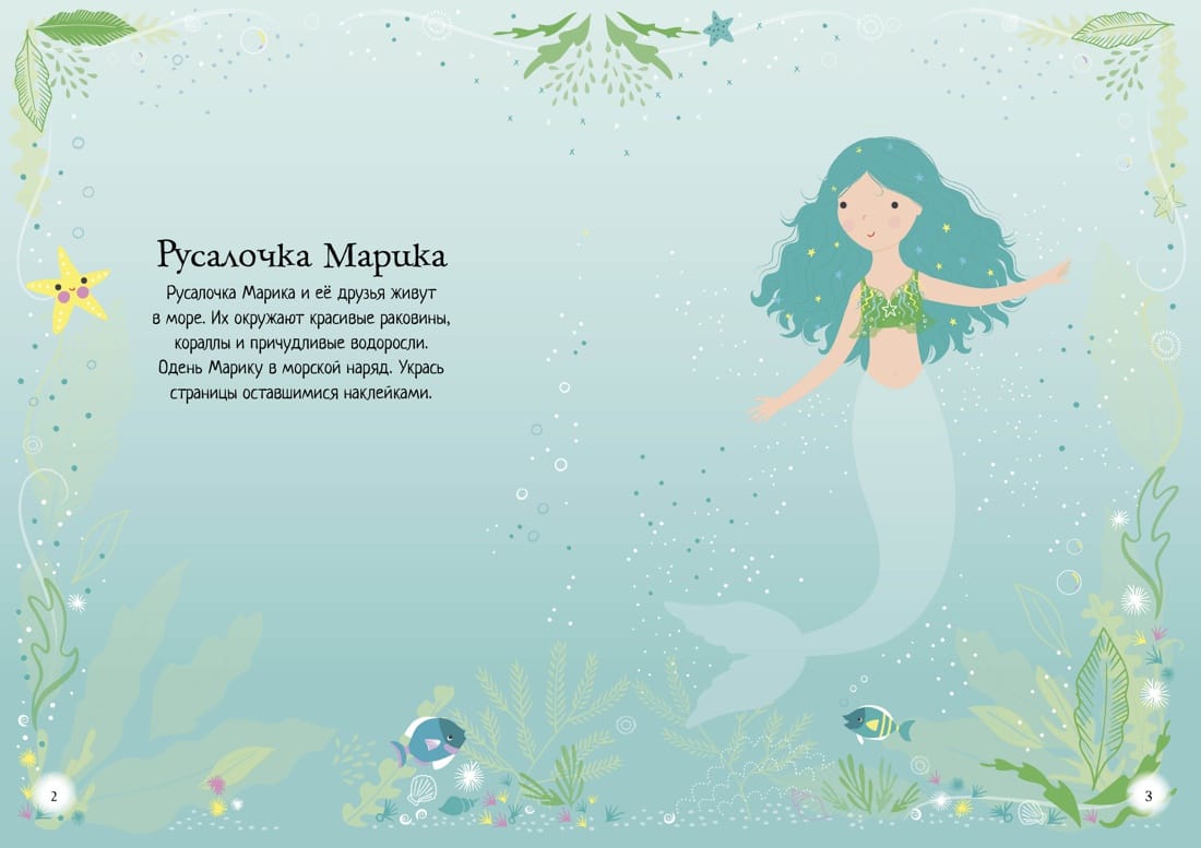 Подбери русалочке Марике и её подружкам красивые наряды для прогулок по подводному царству и познакомься с морскими обитателями.  Читаем и играем! Развиваем внимание, воображение, мелкую моторику и художественный вкус.
