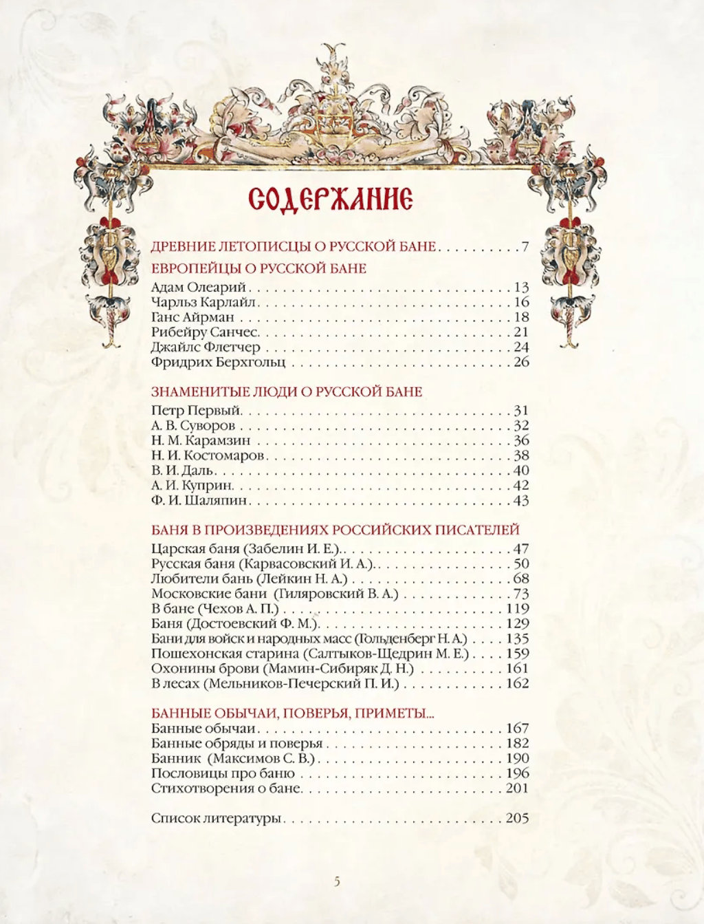 Издание содержит уникальные тексты, в которых ярко и живописно представлена история и традиции русской бани. Отдельные главы книги посвящены свидетельствам древних летописцев, воспоминаниям европейских путешественников XVI-XVIII веков, произведениям российских писателей и историков, банным обычаям, поверьям и приметам.