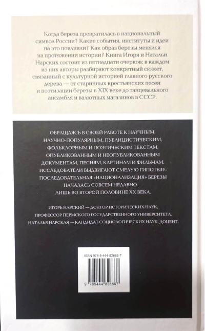 Когда береза превратилась в национальный символ России? Какие события, институты и идеи на это повлияли? Как образ березы менялся на протяжении истории? Книга Игоря и Натальи Нарских состоит из пятнадцати очерков: в каждом из них авторы разбирают конкретный сюжет, связанный с культурной историей главного русского дерева — от старинных крестьянских песен и поэтизации березы в XIX веке до танцевального ансамбля и валютных магазинов в СССР. Обращаясь в своей работе к научным, научно-популярным, публицистическим, фольклорным и поэтическим текстам, опубликованным и неопубликованным документам, песням, картинам и фильмам, исследователи выдвигают смелую гипотезу: последовательная «национализация» березы началась совсем недавно — лишь во второй половине XX века. Игорь Нарский — доктор исторических наук, профессор Пермского государственного университета. Наталья Нарская — кандидат социологических наук, доцент.