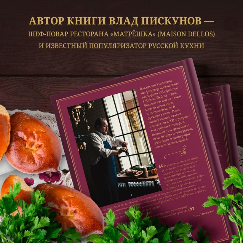 - Русскую кухню сложно представить без румяных, сытных и вкусных пирогов, этому блюду посвящена отдельная глава книги.