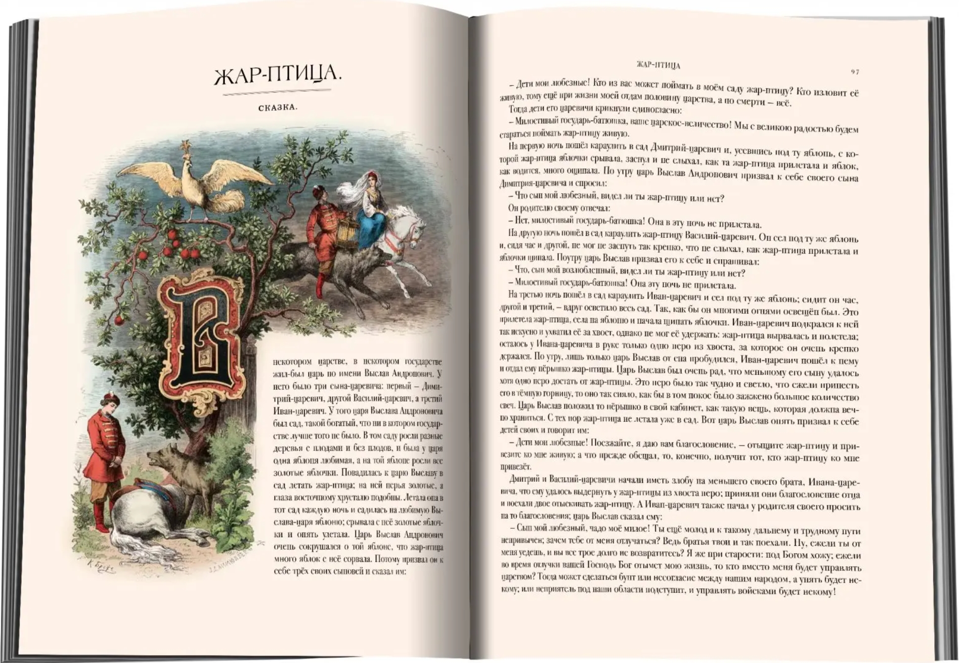 Издание является памятником отечественного книгоиздания второй половины XIX века как по содержанию, так и по технике исполнения. В книгу вошли известные былины и сказки: «Илья Муромец», «Святогор», «Садко богатый», «Кощей бессмертный», «Царь-девица», «Золотая рыбка», «Жар-птица», «Бова королевич», «Мертвая царевна», «Еруслан Лазаревич» («Руслан и Людмила»), «Добрыня Никитич», «Конек-горбунок».