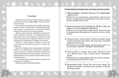 Пособие представляет собой сборник заданий по русскому языку на все темы, которые проходят в 3 классе. Если системно заниматься по каждой теме ежедневно 10 минут, выполняя по одному микро-заданию в день, то грамотность и отличные отметки вашему третьекласснику гарантированы. Данные мини-задания комфортны для выполнения: ребёнок не устаёт и с удовольствием садится выполнять такие задания. А родители, видя простоту и доступность заданий, также охотно позанимаются с ребёнком и проверят его знания. Польза от такой работы огромна, так как все слова текстов практически состоят из одних орфограмм. Всего 2–4 предложения, а ваш ученик повторил более 10–15 орфограмм и выполнил грамматическое задание, которое обязательно встретится ему во всех видах контрольных работ. Кроме того, предлагаемые тексты можно использовать в качестве диктантов. По пособию будет также полезно заниматься в выходные и в каникулы.