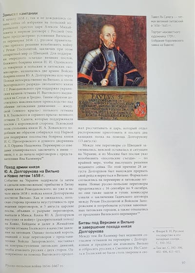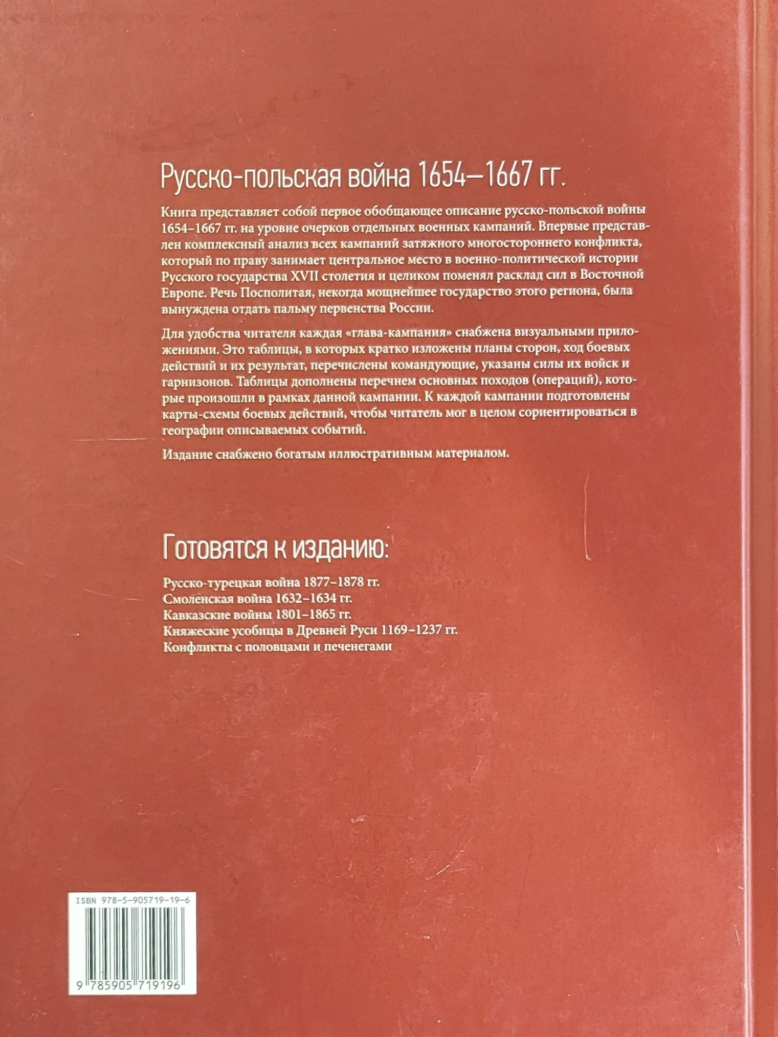 Книга представляет собой первое обобщающее описание русско-польской войны 1654-1667 гг. на уровне очерков отдельных военных кампаний. Впервые представлен комплексный анализ всех кампаний затяжного многостороннего конфликта, который по праву занимает центральное место в военно-политической истории Русского государства XVII столетия и целиком поменял расклад сил в Восточной Европе. Речь Посполитая, некогда мощнейшее государство этого региона, была вынуждена отдать пальму первенства России. Для удобства читателя каждая «глава-кампания» снабжена визуальными приложениями. Это таблицы, в которых кратко изложены планы сторон, ход боевых действий и их результат, перечислены командующие, указаны силы их войск и гарнизонов. Таблицы дополнены перечнем основных походов (операций), которые произошли в рамках данной кампании. К каждой кампании подготовлены карты-схемы боевых действий, чтобы читатель мог в целом сориентироваться в географии описываемых событий. Издание снабжено богатым иллюстративным материалом.