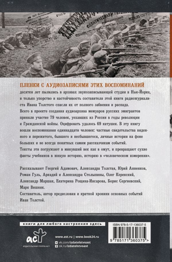 В эту книгу вошли воспоминания одиннадцати человек: частные свидетельства виденного и пережитого, бывшего и несбывшегося, личные истории на фоне больших и не всегда понятных самим рассказчикам событий. Благодаря им мы можем увидеть историю в «человеческом измерении» и ощутить дуновение ушедшего времени. Материалы для этой книги были собраны корреспондентами Радио Свобода и предоставлены для издания книги русской редакцией Радио Свобода. Составитель, автор биографических справок и краткой хроники основных событий — Иван Толстой.