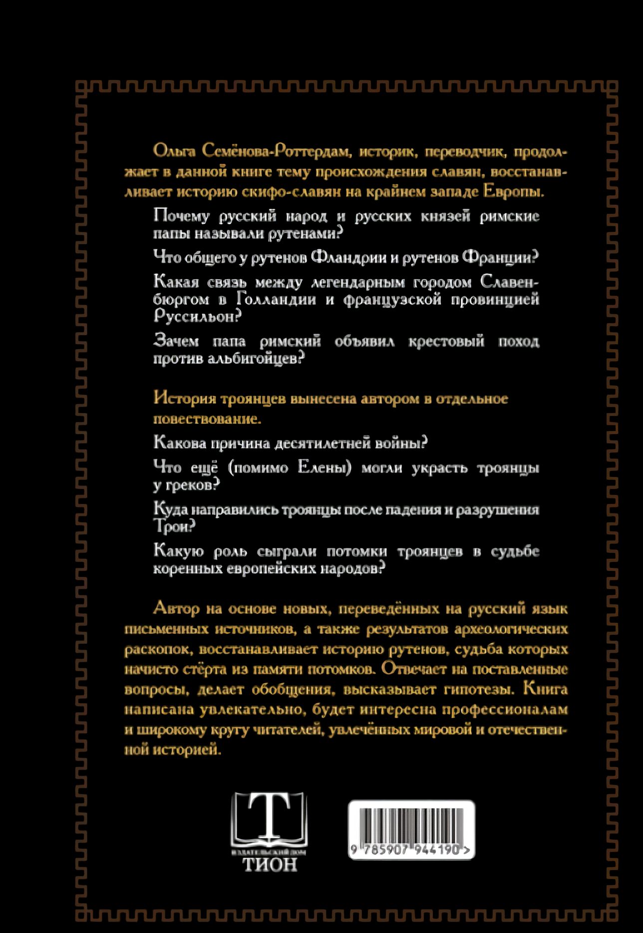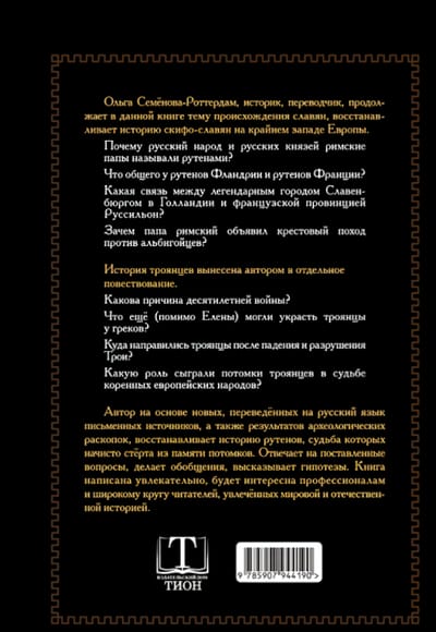 Ольга Семёнова-Роттердам, историк, переводчик, продолжает в данной книге тему происхождения славян, восстанавливает историю скифо-славян на крайнем западе Европы.