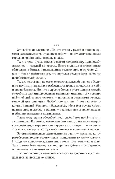 Когда от государств и городов остались только воспоминания, тем, кто уцелел в ядерном аду, осталось только выживать. Выживать, пытаясь защитить себя и своих близких от крысиных законов пустыни и правила кулака, делая для этого всё возможное. А наведя относительный порядок в пустыне, можно заняться и морем, где безраздельно хозяйничают пираты. Ведь если твои жена и сын — морские муты и не могут жить без этой стихии, то придётся сделать так, чтобы и в море им ничто не угрожало.