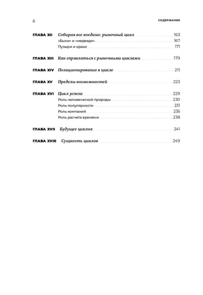 В окружающем нас мире некоторые события и явления регулярно повторяются, влияя на нашу жизнь и поступки. Понимание циклических закономерностей освобождает нас от необходимости каждый раз заново принимать решения в схожих обстоятельствах. Финансовые рынки также работают в соответствии с типовыми сценариями, некоторые из которых принято называть циклами. Они порождаются внешними обстоятельствами, но — и это одна из центральных мыслей данной книги — в не меньшей степени на них воздействуют взлеты и падения эмоционального и психологического состояния человека и связанное с ним поведение. Один из величайших инвесторов своего времени Говард Маркс живым и легким языком учит тому, как распознавать и оценивать циклы, как не впадать в крайности и как использовать знания о рыночных циклах, чтобы успешно инвестировать на фондовом рынке.