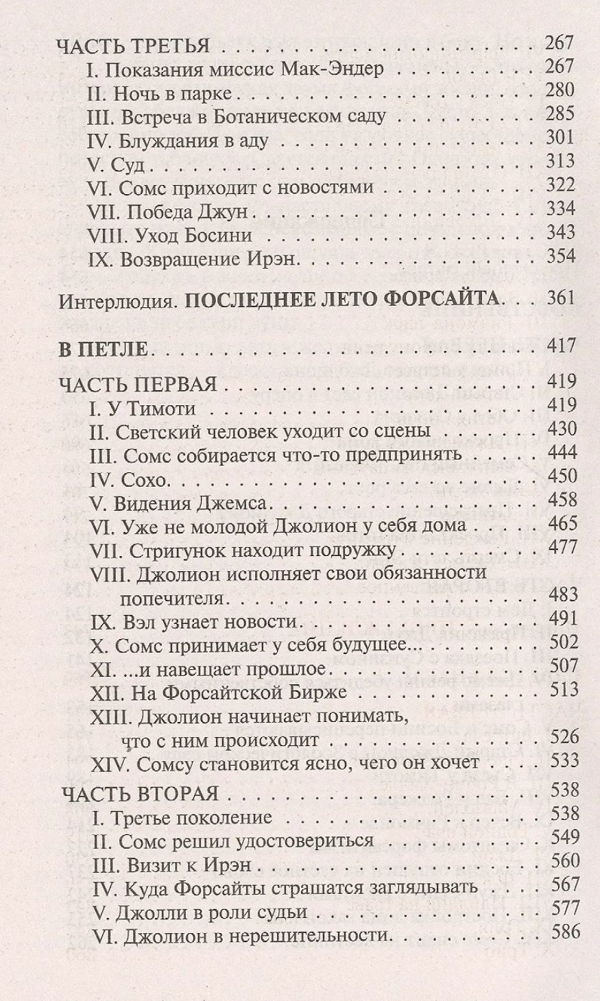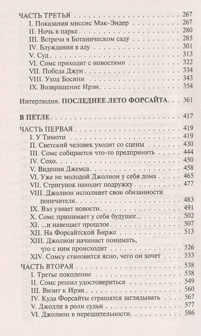 «Сагу о Форсайтах» Голсуорси писал более 15 лет. Поистине не имеющий аналогов по масштабности цикл, охватывающий жизни не одного поколения семьи Форсайт и их ближайшего окружения. Неоднократно служившая основой для телесериалов и фильмов, эта эпическая семейная сага, с одной стороны, поднимает острые социальные вопросы, а с другой — рассказывает о судьбах людей, чьи жизненные перепитии не оставят никого равнодушным. Яркие характеры, неожиданные сюжетные повороты, любовь и страсть, сметающие все на своем пути, сплетни, козни, интриги, тайны, — вот основа успеха этой никогда не устаревающей книги.