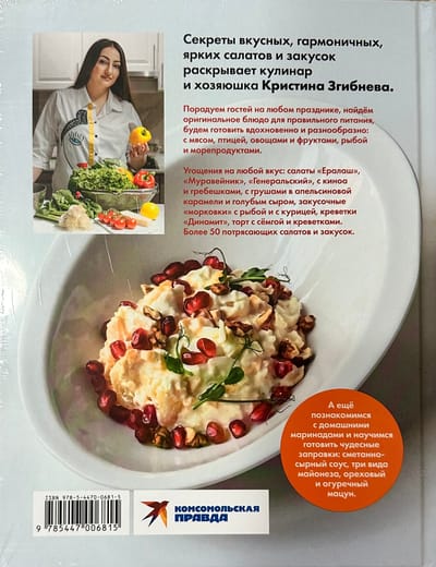 Секреты вкусных, гармоничных, ярких салатов и закусок раскрывает кулинар и хозяюшка Кристина Згибнева. Порадуем гостей на любом празднике, найдем оригинальные блюда для правильного питания, для торжественных случаев и закусок «на скорую руку», будем готовить вдохновенно и разнообразно: с мясом, птицей, овощами и фруктами, рыбой и морепродуктами. Угощения на любой вкус: салаты «Ералаш», «Муравейник», «Генеральский», с киноа и гребешками, с грушами в апельсиновой карамели и голубым сыром, закусочные «морковки» с рыбой и с курицей, креветки «Динамит», торт с семгой и креветками. Более 50 потрясающих салатов и закусок. А еще познакомимся с домашними маринадами и научимся готовить чудесные заправки: сметанно-сырный соус, три вида майонеза, ореховый и огуречный мацун. Салатов много не бывает!