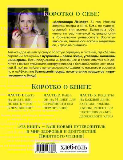С помощью правильного питания вылечила себя, свою семью и клиентов от множества хронических заболеваний. Александра подготовила эту книгу, с ее обширной вступительной частью и рецептами, которые поддерживают здоровье, уменьшают воспаление, придают силы в течение дня. Для такого питания нет противопоказаний — эти блюда можно готовить для взрослых и детей. Автор — сторонник быстрой готовки, поэтому вы не найдете сложных рецептов или труднодоступных ингредиентов.