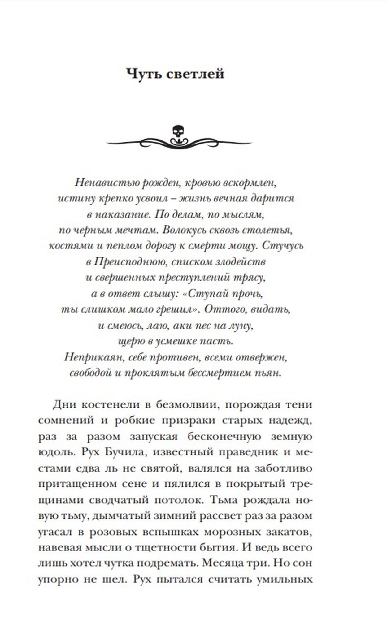 Если вы готовы и не боитесь, то добро пожаловать. Вам улыбнется, протянет руку и поведет за собой Рух Бучила: убийца, развратник, пройдоха и лиходей. Мелкая песчинка в глазу Господа Бога, зудящий репейник на мохнатой заднице Сатаны.