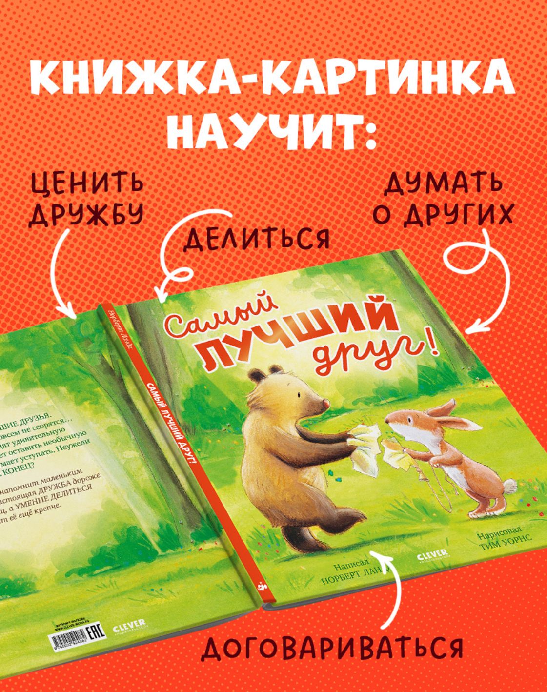 «Самый лучший друг!» — чудесная первая книга малыша с красивыми картинками. Мудрость книги для детей поможет мальчикам и девочкам научиться договариваться и общаться со сверстниками.