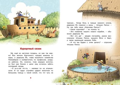 «Сказки Картонного городка» – это весёлые истории о самом удивительном, самом необыкновенном городке на свете. Здесь всё сделано из картона – дома, машины, самолёты, даже корабли и космические ракеты. А живёт-поживает в этом городке забавный мышиный народ, с которым непременно стоит познакомиться! Наступило лето, и многие жители Картонного городка собираются в отпуск. Семейство Папмайеров тоже отправляется на юг. Его глава дядюшка Йо, изобретатель и мастер на все лапы, специально для поездки даже сконструировал корабль. Как же здорово будет на нём рассекать морские волны! А ещё он придумал автомат для изготовления мороженого. В жару это лакомство будет очень кстати. Казалось, мышек ждёт просто сказочный отдых...