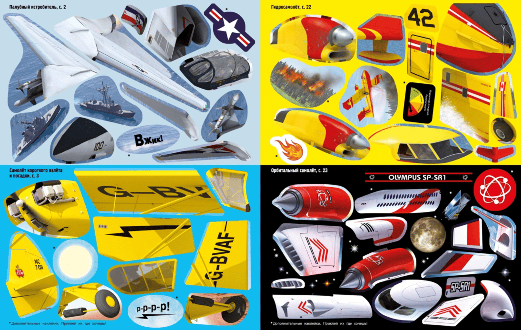Открой эту книгу и познакомься с самыми известными самолётами военной авиации и пассажирскими лайнерами, узнай, какой самолёт летал со сверхзвуковой скоростью, а какой впервые совершил полёт через пролив Ла-Манш. Собери биплан, дельталёт, истребитель и другие Самолёты с помощью ярких наклеек.