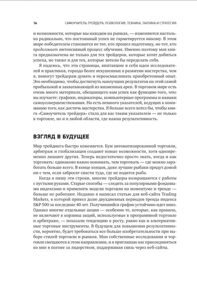 Книга Бретта Стинбарджера, директора по развитию трейдеров компании Kingstree Trading, LLC, станет вашим проводником на пути к успеху. Следуя рекомендациям автора, вы будете шаг за шагом продвигаться вперед. Какой способ торговли подойдет именно вам? Как совершенствовать технику, тактику и стратегию? Что такое циклы обучения и зачем они нужны? Какие навыки необходимо развивать новичку, чтобы стать профессионалом? Чем компетентность отличается от мастерства? Можно ли избежать психологических травм? Как использовать методы краткосрочной психотерапии? Ответы на эти и другие важнейшие вопросы вы найдете в этой книге, которая будет полезна и новичкам, и опытным трейдерам. Бретт Стинбарджер считает торговлю не игрой, а наукой и учит находить закономерности там, где большинство видит хаос.