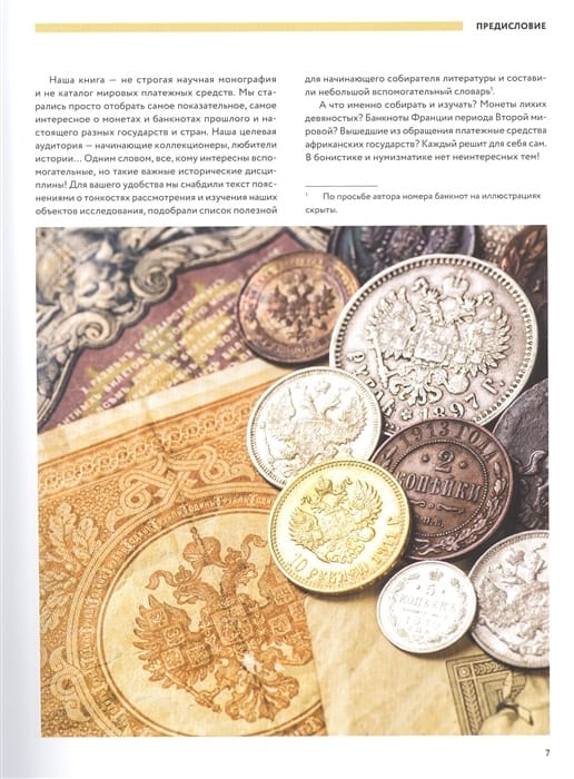 Эта книга - не строгая научная монография и не каталог мировых платежных средств. Она предназначена всем, кому интересна не только история денег, но и история культуры, искусства, экономики, политических отношений разных стран. На страницах вы найдете самые интересные факты о монетах и банкнотах прошлого и настоящего, разных государств и стран, фотографии и описания наиболее значимых в истории монет и банкнот.  Для вашего удобства текст снабжен пояснениями о тонкостях рассмотрения и изучения объектов исследования, подобран список полезной литературы для начинающего коллекционера и составлен небольшой вспомогательный словарь. Благодаря этой книге вы для себя определите, что именно собирать и изучать: монеты лихих девяностых, банкноты Франции периода Второй мировой или вышедшие из обращения платежные средства африканских государств.