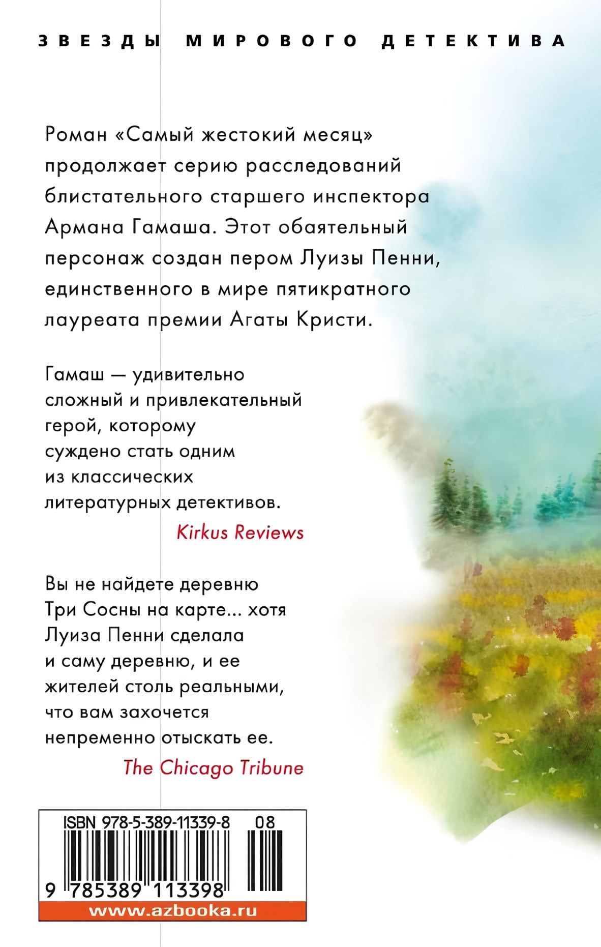 Роман «Самый жестокий месяц» продолжает серию расследований блистательного старшего инспектора Армана Гамаша — нового персонажа, созданного пером Луизы Пенни, единственного в мире пятикратного лауреата премии Агаты Кристи. «Самый жестокий месяц» — так сказал поэт об апреле. И чтобы поддержать свою репутацию, этот месяц подвергает старшего инспектора Армана Гамаша суровому испытанию. Вместе со своей командой Гамаш вновь приезжает в деревню Три Сосны, чтобы расследовать загадочную смерть некой Мадлен Фарво. Во время спиритического сеанса, который местные жители проводили в старом заброшенном доме, пользующемся дурной славой, Мадлен внезапно умирает. Все считают, что она просто испугалась до смерти, ведь общение с миром призраков никому не проходит даром. Однако Гамаш подозревает, что дело гораздо сложнее, чем кажется на первый взгляд. Начав расследование, он неожиданно становится объектом яростных нападок в прессе, связанных с одним из его прошлых дел. Теперь ему нужно не только раскрыть предполагаемое убийство, но и обелить свое имя...