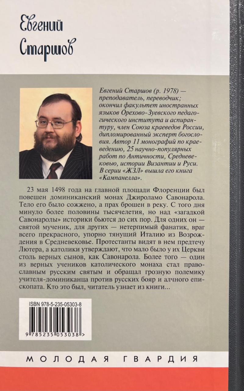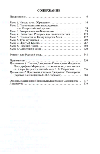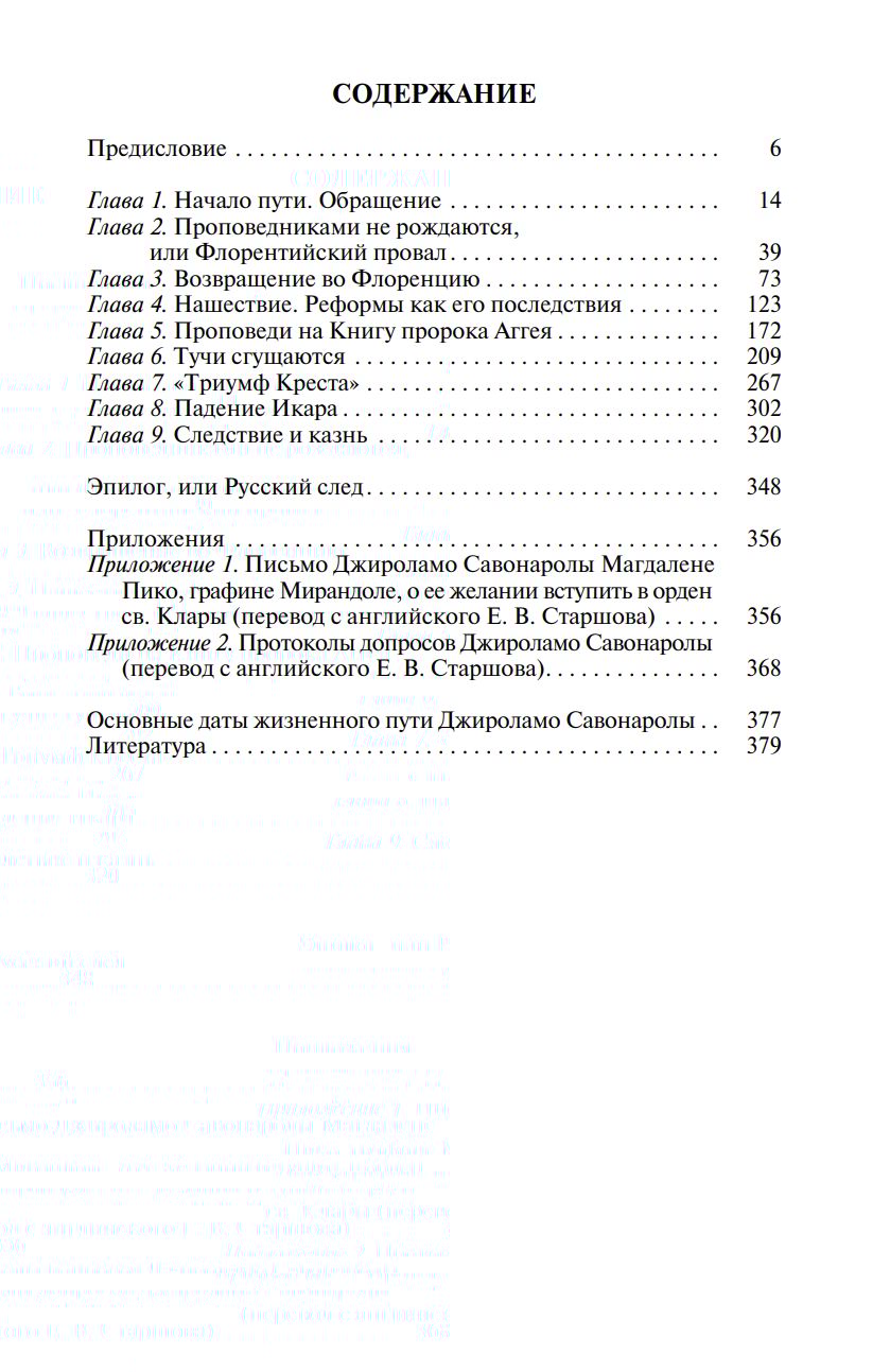 Джироламо Савонарола (1452—1498) происходил из семьи потомственных врачей, и ожидалось, что он продолжит дело династии. Он действительно стал врачом — но не тел, а человеческих душ. В век жестоких войн, бесчестной наживы и невиданного разврата его призывы к милосердию, доброте, взаимопомощи, исправлению жизни набатом разнеслись над терзаемой внешними и особенно внутренними врагами Италией, но… остались пустым звуком, а самого говорившего заставили замолчать. Навсегда. Жизнь Савонаролы — это история постоянной борьбы, неравного боя одного против всех. Изучение письменного наследия Савонаролы, в первую очередь его писем, многие из которых переведены для данного издания впервые, являет нам не серого фанатика, а человека сострадательного и высокообразованного, достаточно указать на упоминание им закона всемирного тяготения за 200 лет до Ньютона. Попытка же осуществить во Флоренции теократию (власть Бога), провозгласив Иисуса Христа дожем создаваемой Савонаролой республики, не имеет прецедентов в истории человечества.