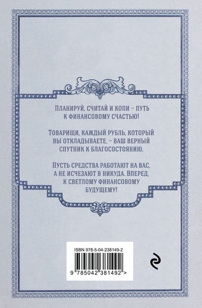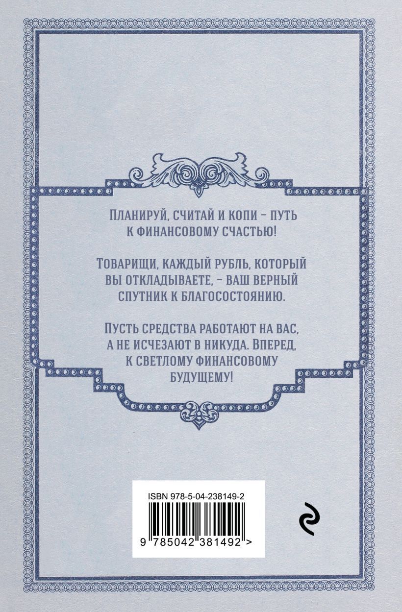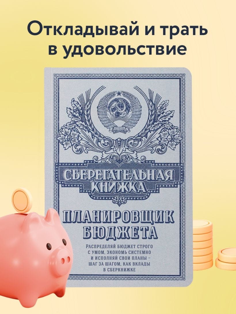Сохраняй порядок в финансах — как в сберкнижке: планируй, копи, исполняй мечты! Этот ежедневник в духе доброй советской сберкнижки поможет привести доходы и расходы в рабочий порядок и превратить экономию в привычку.
