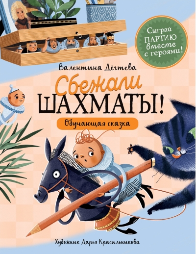 Папа вечно сидит за своими шахматами, а на Асю — ноль внимания. Как-то раз не выдержала Ася да как топнет ножкой! Вмиг посыпались фигурки с шахматной доски: кто под лампу закатился, кто плюхнулся в кружку с чаем… Стыдно стало Асе, собрала она все фигурки, вот только две так и не нашла — белого Пешкина и черного Лошадкина. Теперь двух потеряшек ждут удивительные приключения: бегство от кошки, плавание верхом на резиновой уточке и даже сражение с грозным королем Кактусом…  В этой книжке вы найдете не только забавную сказку о похождениях двух фигурок, но и множество занимательных фактов о шахматах, а также словарик с важными терминами. А прочитав книжку до конца, вы сможете самостоятельно разыграть описанную в ней шахматную партию!  Придумала эту сказку Валентина Дегтева — известный писатель и сценарист, педагог литературной мастерской, победитель конкурса «Новая детская книга» и лауреат многих премий, в их числе «Книга года» и «Золотое перо Руси».  А картинки к ней нарисовала Дарья Красильникова — лауреат XII сезона конкурса «Новая детская книга» в номинации «Новая детская иллюстрация».