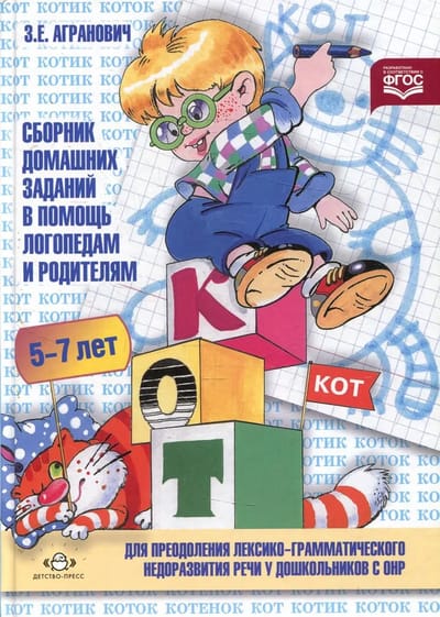 Сборник домашних заданий в помощь логопедам и родителям для преодоления лексико-грамматического недоразвития речи у дошкольников с ОНР. Часть №1. 5-7 лет