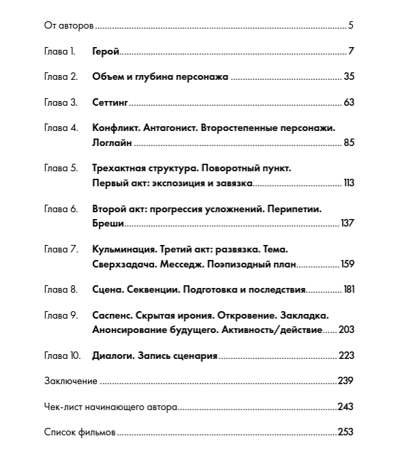 В книге вы найдете все необходимое для начинающего сценариста: инструменты, правила и приемы, без которых не обойтись при создании истории. Вы узнаете, из чего состоит хороший сценарий, как придумать интересного героя, которому зритель захочет сопереживать, на что нужно обращать внимание при разработке сеттинга, какие правила необходимо соблюдать при создании конфликта и в чем особенности каждого из актов в структуре сценария. Эта книга — экспертное пошаговое руководство с подробным чек-листом, по которому удобно работать при написании сценария, — будет полезна всем, кто хочет овладеть основами сценарного мастерства.
