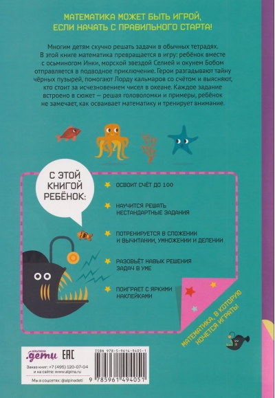Сюжет напоминает морской квест: чтобы пройти все этапы и спасти океан от чёрных пузырей, ребёнку предстоит не только решать примеры на сложение, вычитание, умножение и деление, но и мыслить логически, сравнивать, искать правильные пути, исключать неверные варианты и проверять свои гипотезы.