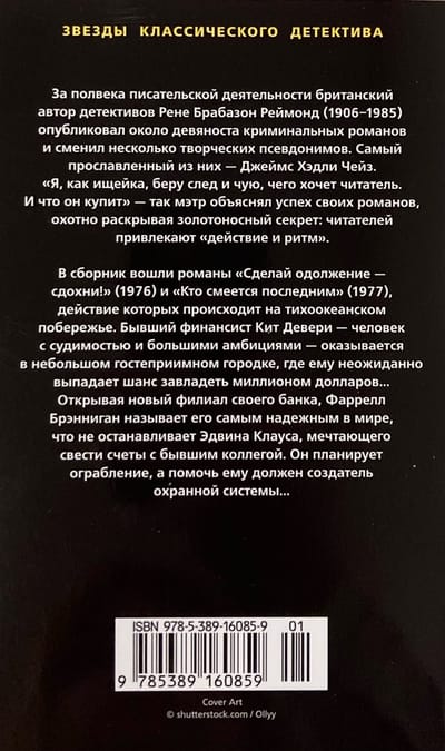 За полвека писательской деятельности британский автор детективов Рене Брабазон Реймонд (1906–1985) опубликовал около девяноста криминальных романов и сменил несколько творческих псевдонимов. Самый прославленный из них — Джеймс Хэдли Чейз.