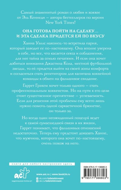 Гаррет Грэхем хочет только одного — стать профессиональным хоккеистом. Но на пути к его цели стоит существенное препятствие — успеваемость. Если для решения этой проблемы ему всего лишь нужно помочь одной саркастичной брюнетке, он только за. Но когда один неожиданный поцелуй ведет к самой сумасшедшей связи в их жизни, Гаррет понимает, что фальшивых отношений недостаточно. Теперь ему предстоит доказать Ханне, что мужчина, которого она хочет по‑настоящему, очень похож на него.