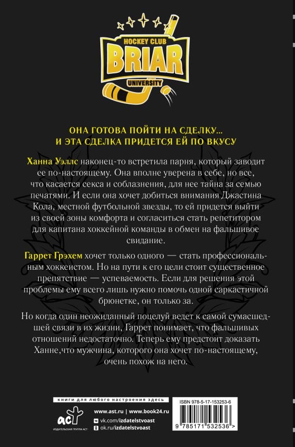 Ханна Уэллс наконец-то встретила парня, который заводит ее по-настоящему. Она вполне уверена в себе, но все, что касается секса и соблазнения, для нее тайна за семью печатями. И если она хочет добиться внимания Джастина Кола, местной футбольной звезды, то ей придется выйти из своей зоны комфорта и согласиться стать репетитором для капитана хоккейной команды в обмен на фальшивое свидание. Гаррет Грэхем хочет только одного — стать профессиональным хоккеистом. Но на пути к его цели стоит существенное препятствие — успеваемость. Если для решения этой проблемы ему всего лишь нужно помочь одной саркастичной брюнетке, он только за. Но когда один неожиданный поцелуй ведет к самой сумасшедшей связи в их жизни, Гаррет понимает, что фальшивых отношений недостаточно. Теперь ему предстоит доказать Ханне, что мужчина, которого она хочет по-настоящему, очень похож на него.