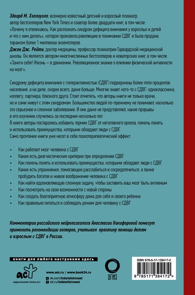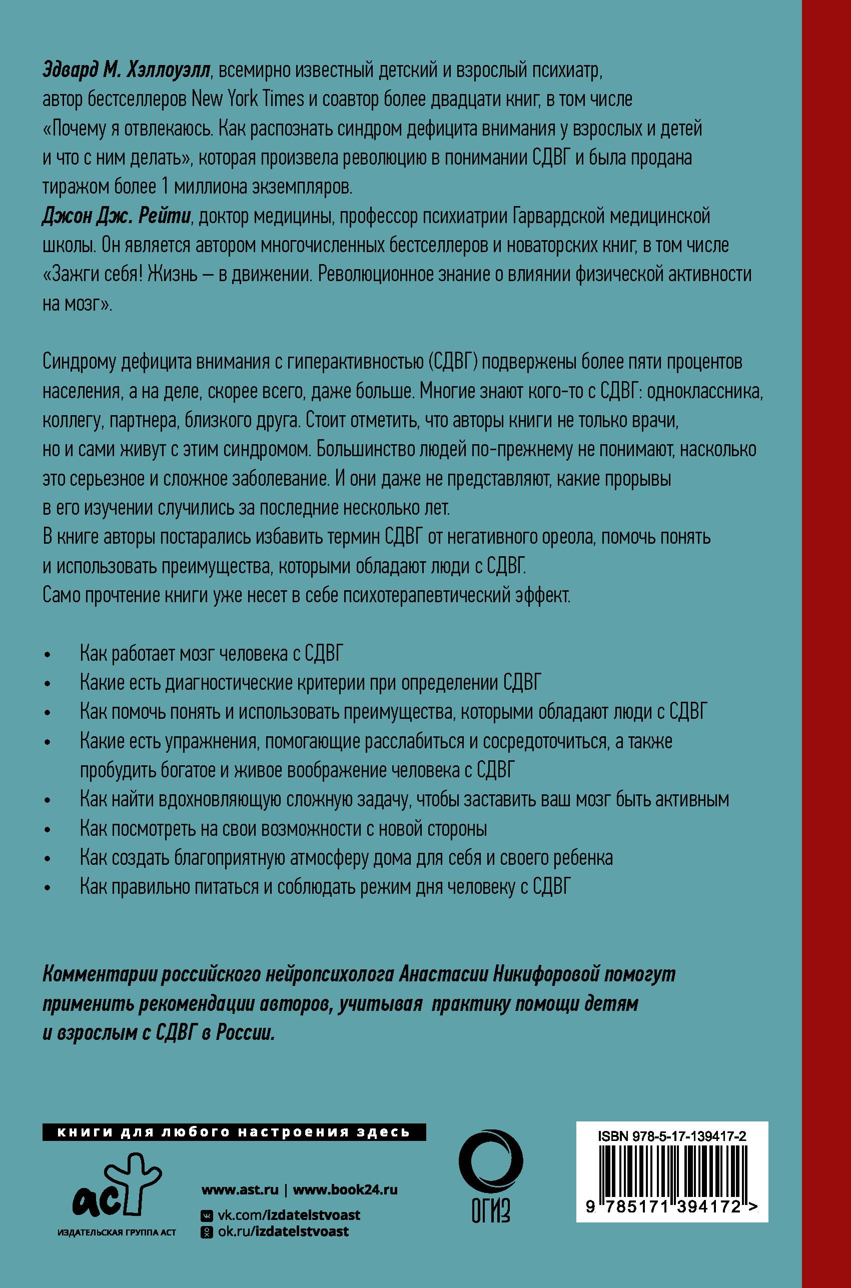 В книге авторы постарались избавить термин СДВГ от негативного ореола, помочь понять и использовать преимущества, которыми обладают люди с СДВГ. Само прочтение книги уже несет в себе психотерапевтический эффект.