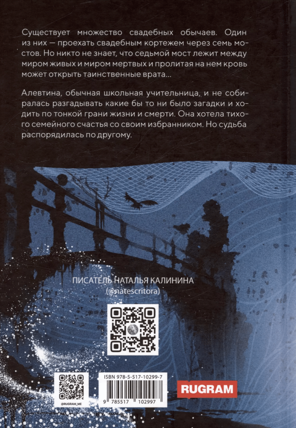 Существует множество свадебных обычаев. Один из них – проехать свадебным кортежем через семь мостов. Но никто не знает, что седьмой мост лежит между миром живых и миром мертвых и пролитая на нем кровь может открыть таинственные врата… Алевтина, обычная школьная учительница, и не собиралась разгадывать какие бы то ни было загадки и ходить по тонкой грани жизни и смерти. Она хотела тихого семейного счастья со своим избранником. Но судьба распорядилась по другому.