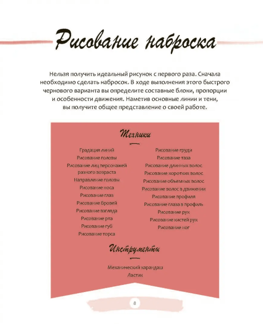 Примеры, разобранные в этой книге, помогают достичь двух важных целей: получить удовольствие от рисования и одновременно приобрести прочную базу. С каждым уроком вы будете изучать новые техники. Постепенно развивая свои навыки, вы почувствуете уверенность в себе и в итоге сможете рисовать как настоящий сёдзё-мангака!