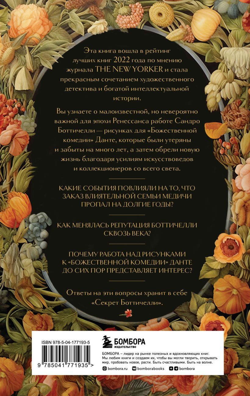 Около пятисот лет назад Сандро Боттичелли, скромный и небогатый художник, создал произведения неземной красоты. Влиятельная семья Медичи поручила ему проиллюстрировать «Божественную комедию» Данте Алигьери. К сожалению, эти рисунки затерялись почти на 400 лет, а великий Боттичелли был забыт. Эта книга расскажет о том, как великий художник вернулся из небытия и какую роль в этом сыграли его удивительные иллюстрации «Божественной комедии».